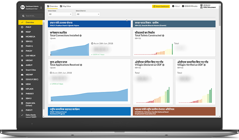 The DISHA Dashboard helps Members of Parliament (MPs), Members of Legislative Assembly (MLAs), and District Officials track the performance of all major flagship schemes in their districts and constituencies.